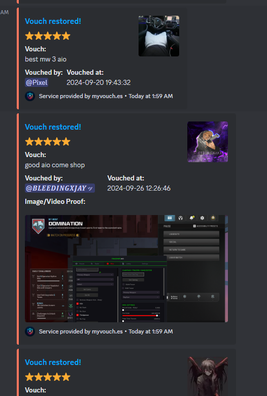 this guy @deleted_user_d4d73bf2826b got me right so many times, not only is his service already incredibly cheap but he also is very very kind and gives many opportunities and allows the community to leave suggestions and actually improves based on those suggestions. 100/10 service this will be the only vouch service i use from now on :)