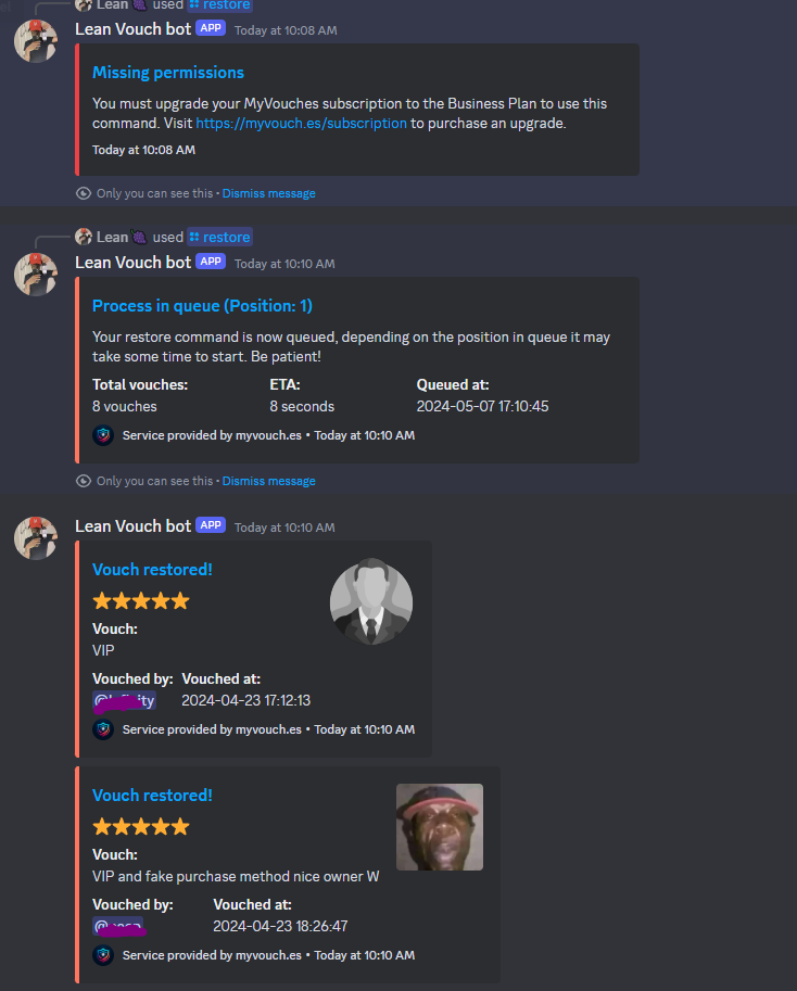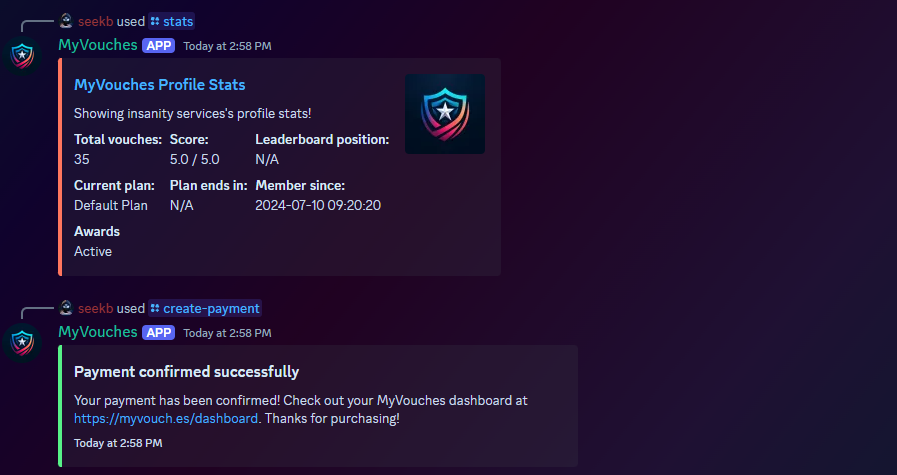 been using MyVouches for a couple months now, and its a GREAT addition to your server, i highly recommend buying this to make your vouches way more special. Also knowing that whatever happens to your server your vouches are safe and sound!
